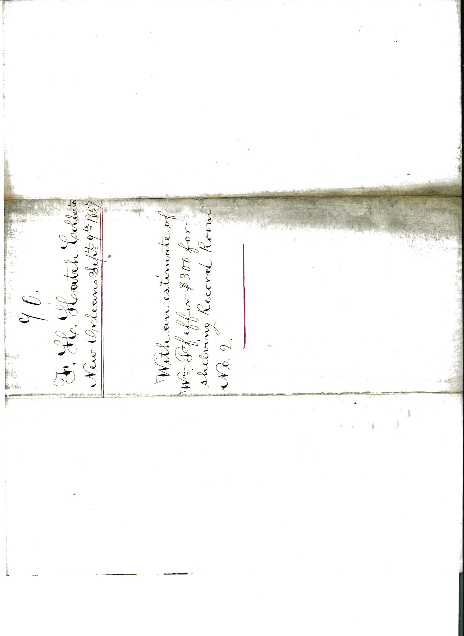 Letter from New Orleans Collector F. H. Hatch to Honorable Howell Cobb, Secretary of the Treasury, 10/09/1857 (Reverse)