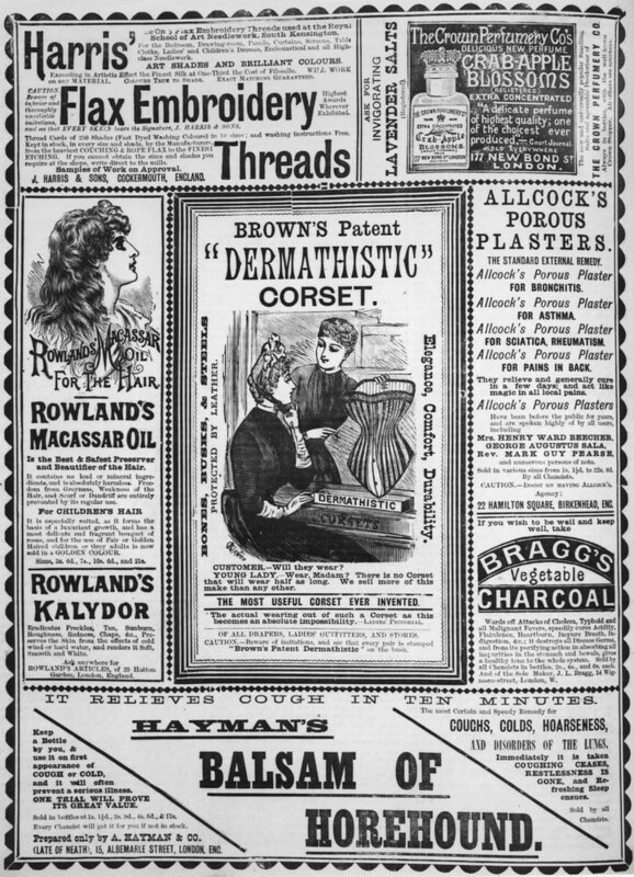 Advertisement for Browns patent dermathistic corset appearing in the Queensland Figaro, 1889