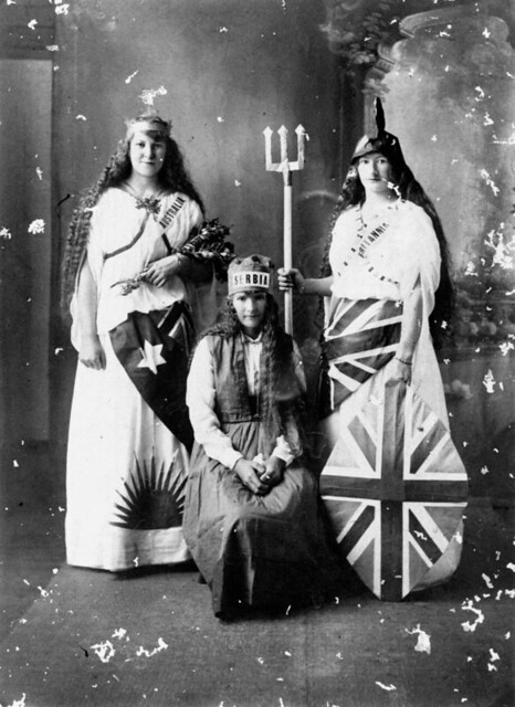 McLucas sisters in costume after the Peace Procession in Wondai, 1918