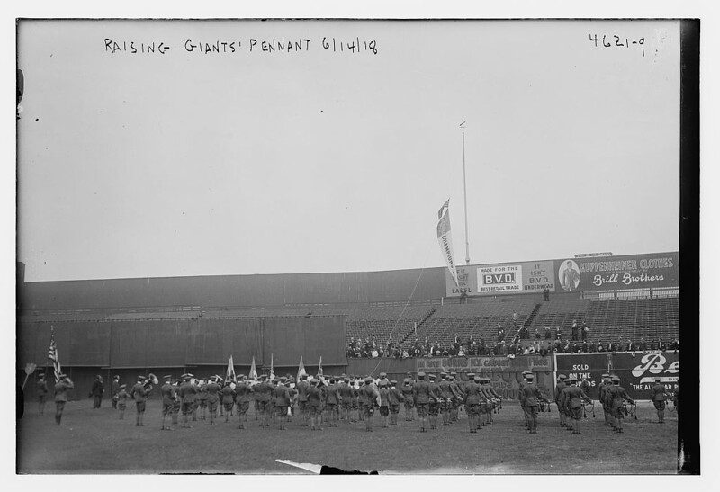 Gen. W.A. Mann & Col Simpson (throwing out ball at Giants home opener, 4/16/18) (LOC)