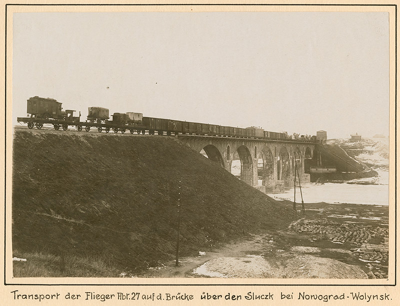 Transport der Flieger Abt. 27 auf d. Bruecke ueber den Sluczk bei Nowograd-Wolynsk