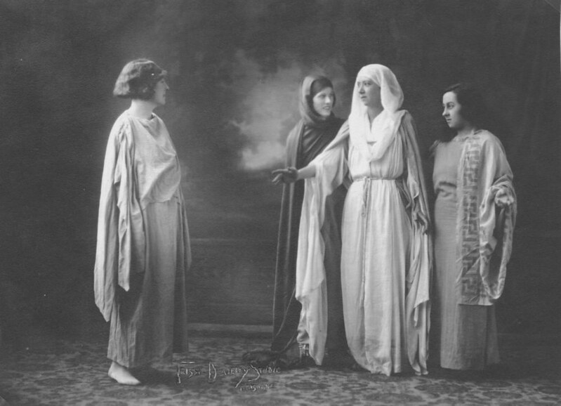 Group, including Babette Stephens, wearing classical Greek-style costume, 1930-1940
