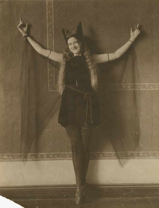 Ballet dancer Dundas Wilkinson striking a pose in a bat costume, ca. 1930