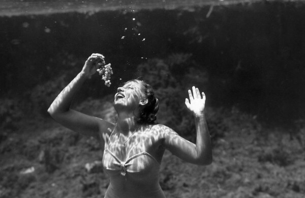 Mermaid eating grapes at Weeki Wachee Springs