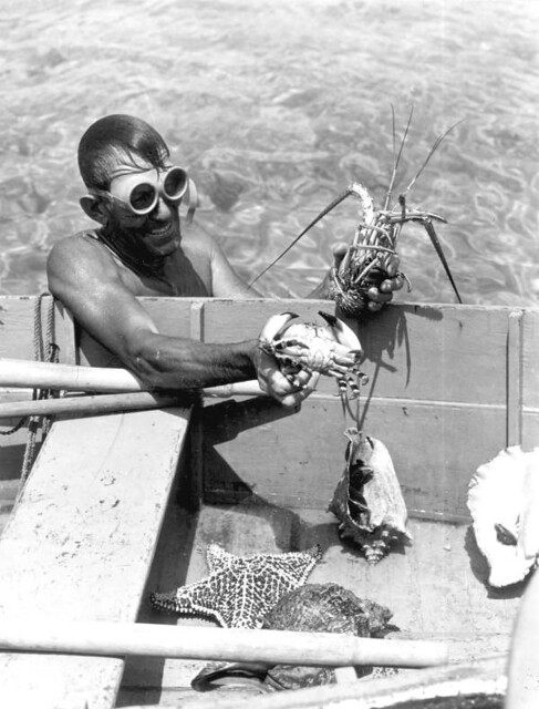 Captain Bill Gray collecting crabs and other marine specimens - Dinner Key