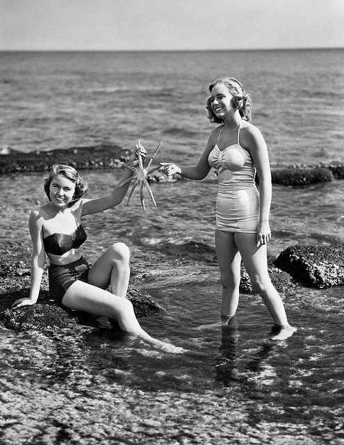 Two little girls at Kissing Point beach Townsville, 1949