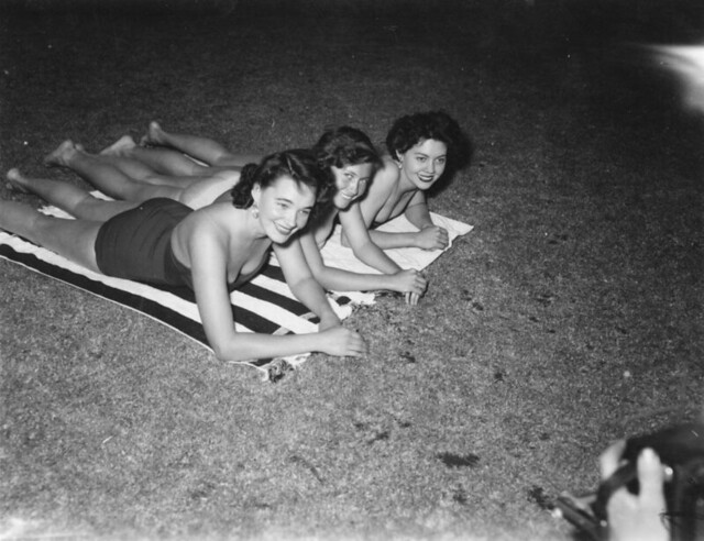 Modelling swimsuits at the Mount Isa swimming pool, 1954