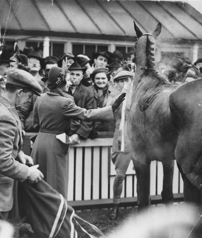 Queen Elizabeth II giving a racehorse a fond pat, Brisbane, 1954