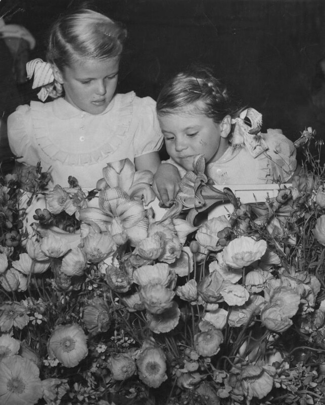 Children examining flowers at the Chelsea Flower Show in Brisbane, 1954Children