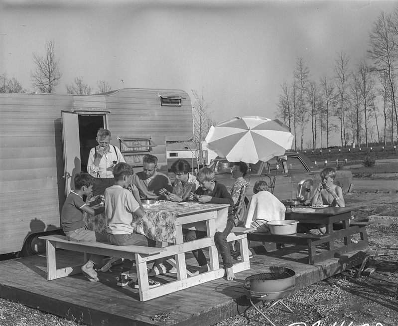Trailer camping in Wabamum Provincial Park, Alberta