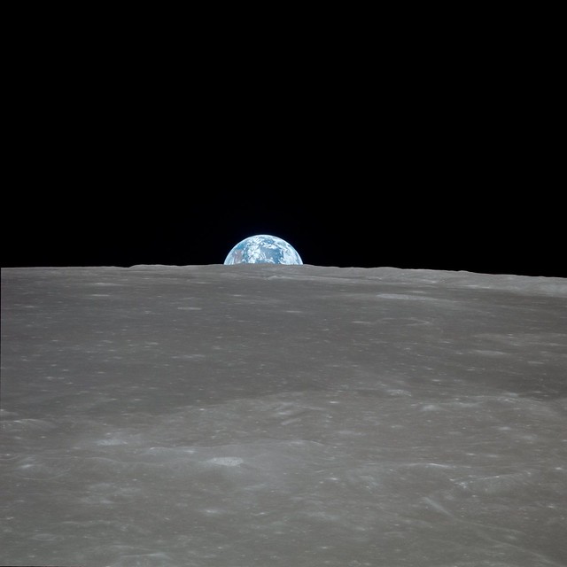 Apollo 11 Mission Image - View of moon limb with Earth on the horizon, Mare Smythii Region