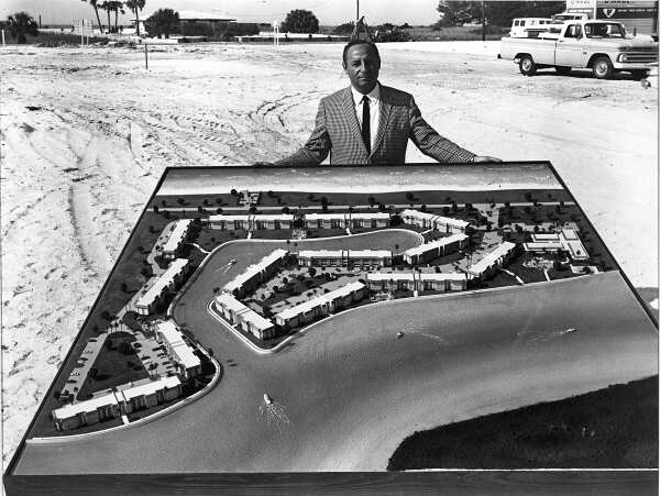 Developer with a scale model condominium development - Longboat Key
