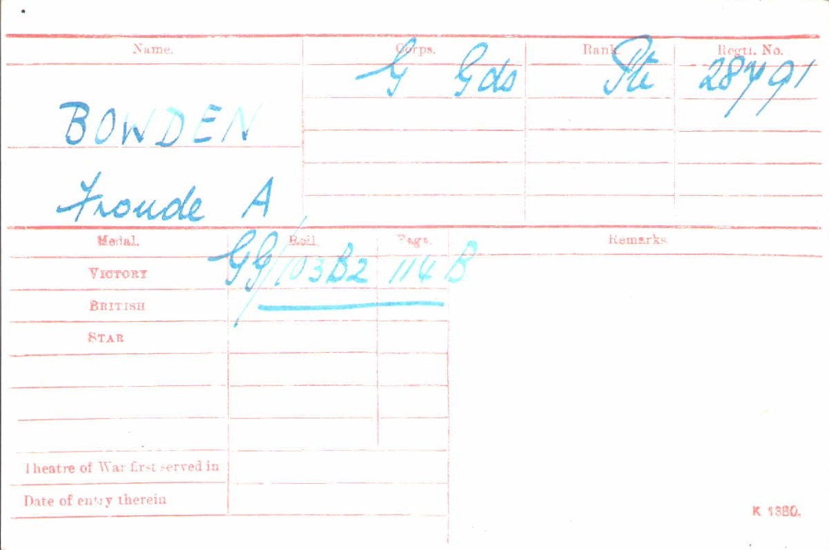 Private Froude Arthur James Bawden 28791, Grenadier Guards