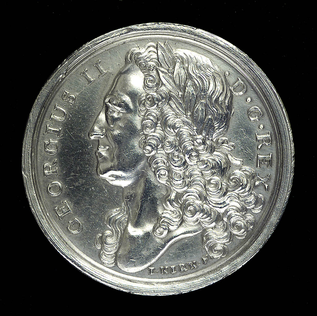 Medal commemorating the Peace of Aix-la Chapelle proclaimed, 1748. Medal commemorating the Peace of Aix-la Chapelle proclaimed, 1748. Obverse: Bust of George II (left), laureate, hair long, no drapery. Legend: 'GEORGIUS II . D . G . REX.' Rever