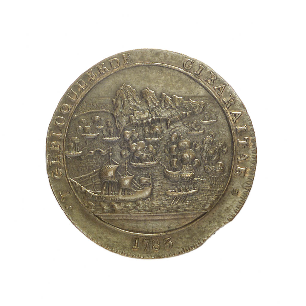 Counter commemorating the blockade of Gibraltar, 1783 and the loss of the 'Royal George', 1782. Counter commemorating the blockade of Gibraltar, 1783 and the loss of the 'Royal George', 1782. Obverse: View of the rock of Gibraltar and