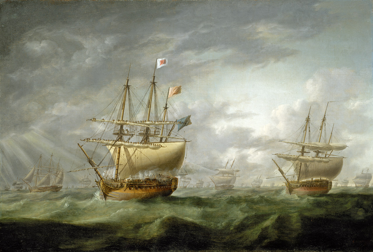 The Battle of the Saints, 12 April 1782 – the end of the action. Inscribed: “To Lord Rodney Adml. of the White, Lord Hood, Sir Francis Samuel Drake Bart. Rear Admls of the Blue, Sir Edmund Affleck Bart. Commodore, The several Captains and Offi