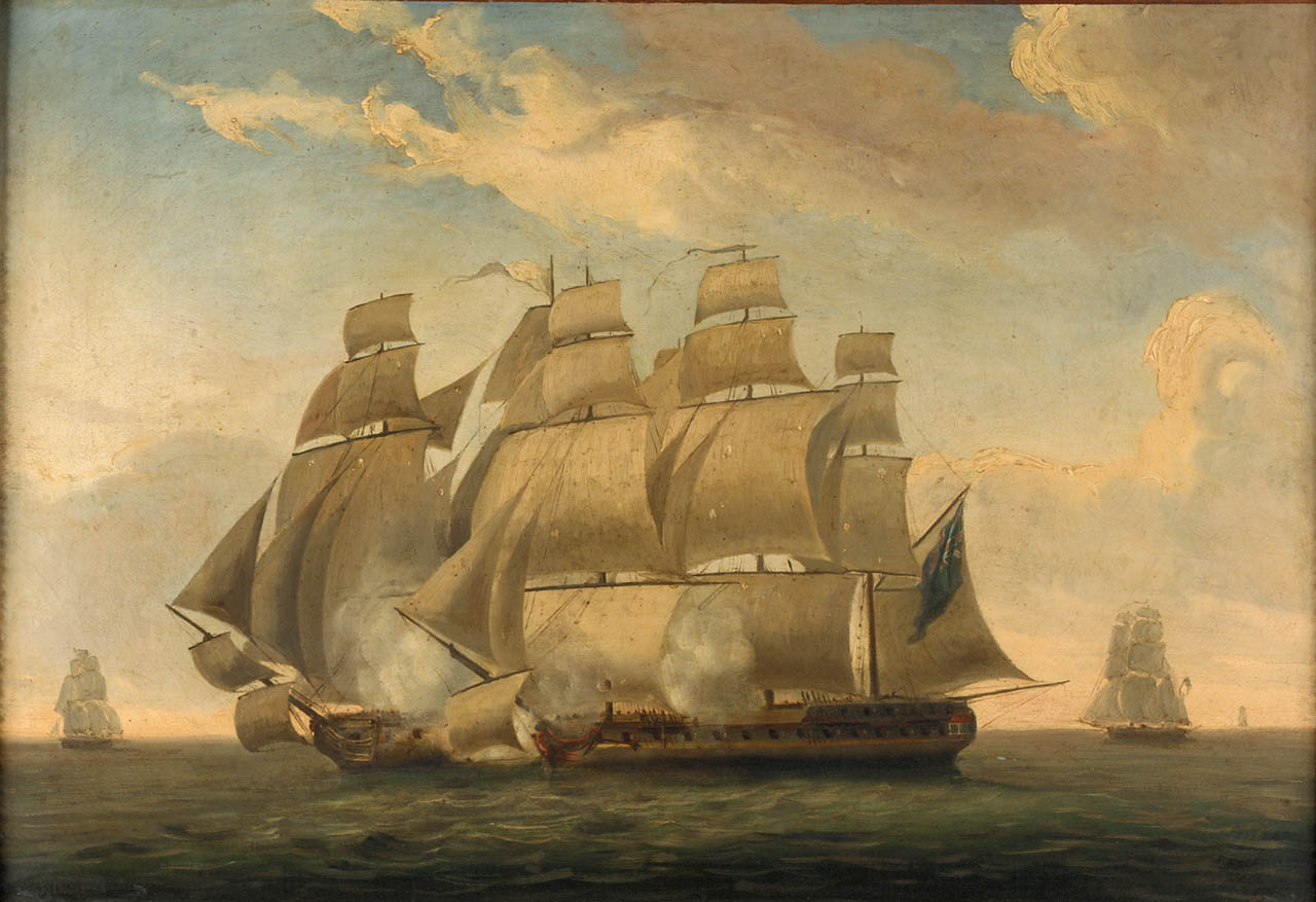 End of the action between HMS Magicienne and La Sibylle, 2 January 1783. Painting.