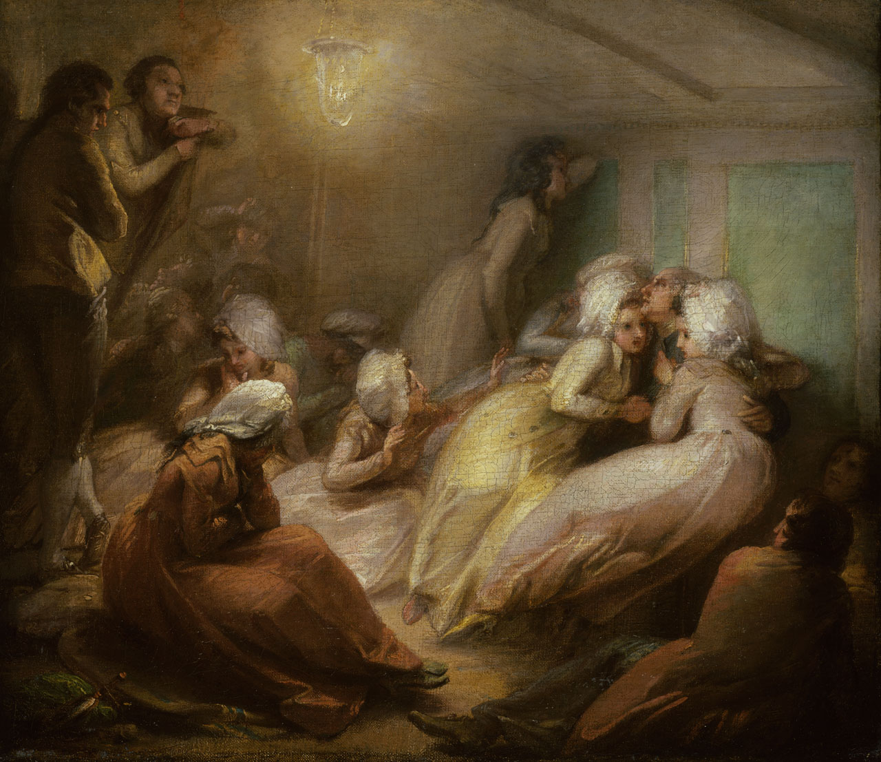 The wreck of the 'Halsewell', Indiaman, 1786. This small oil by Stothard shows the roundhouse - the passenger saloon under the poop - of the outward-bound East Indiaman 'Halsewell' in the early hours of 6 January 1786, after a storm dr