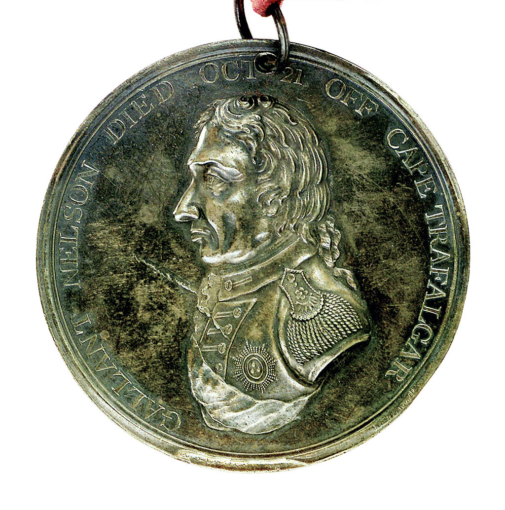 Medal commemorating Vice-Admiral Horatio Nelson (1758-1805) and Nelsonic Crimson Oakes. Medal commemorating Vice-Admiral Horatio Nelson (1758-1805) and Nelsonic Crimson Oakes. Obverse: The Admiral's bust (left), tie-wig, full uniform, with ribbon and