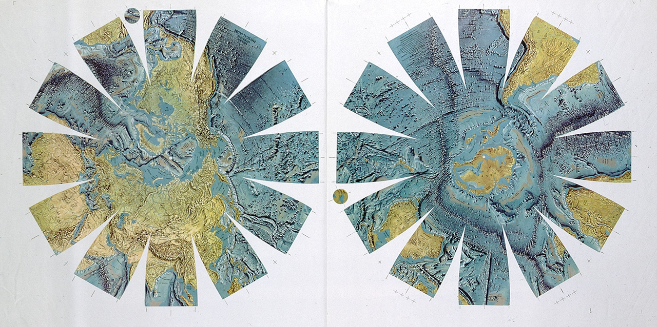 Terrestrial globe gores. Terrestrial globe gores. They form a set with Replogle Globes Inc GLB0267. Geographical details on the gores display artistically rendered cartographic features, in order to show the relief in plane. An extensive geological nomenc