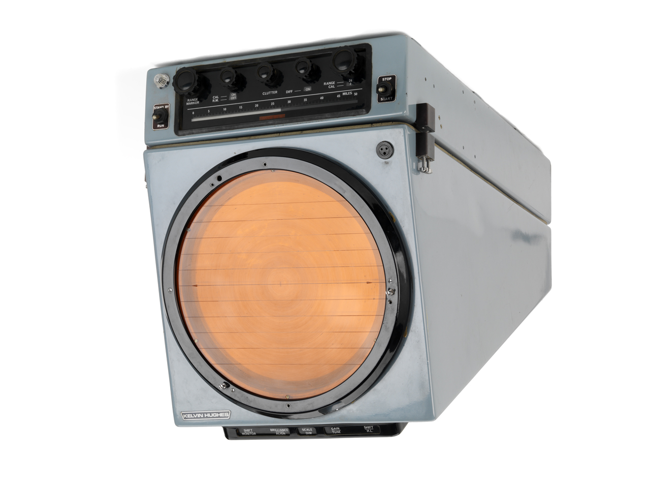 Marine Radar Type 18/12. This radar display unit is typical of the sort of instrument used on ships in the 1970s to monitor the surrounding sea. It was made by Kelvin Hughes, one of the leading navigational instrument suppliers. It has a 12-inch metal-bac