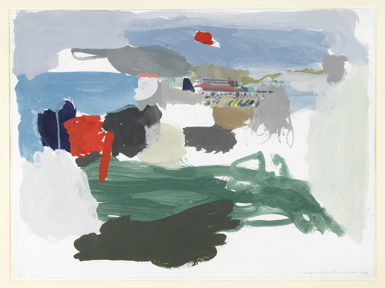 Original memory sketch. In 1997 the Museum commissioned Humphrey Ocean to paint a large picture on the theme of maritime Britain at the end of the 20th century. The resulting picture, 'The first of England', takes as its starting point day-tripp