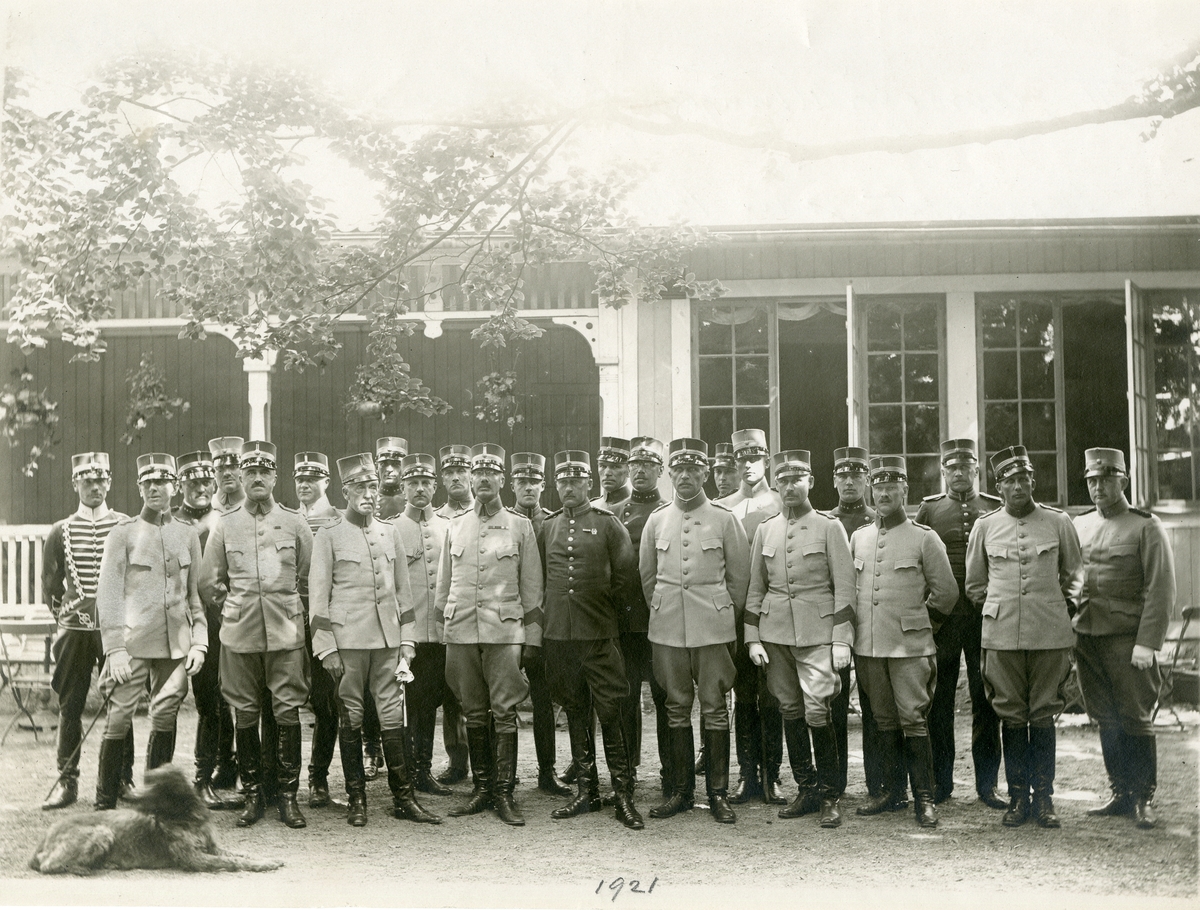 Grupporträtt av officerare ur III arméfördelningens fältövningar i Mariestad, juni 1921.