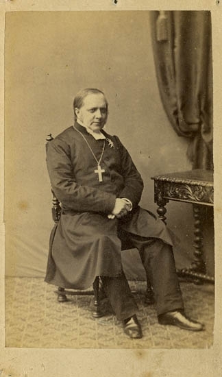 Text på kortets baksida: "Ärkebiskop Henrik Reuterdahl, f. 1795 d. 1870. Ärkebiskop 1856".