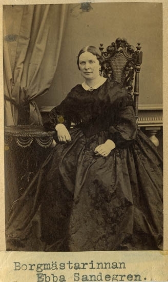 Text på kortets baksida: "Borgmästarinnan Ebba Sandegren, f. Blidberg".