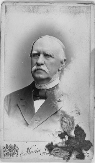 Text på kortets baksida: "Kopparslagare Gustaf Martin Nyberg. Rådman. Född 1/3 1816 död 4/9 1878".