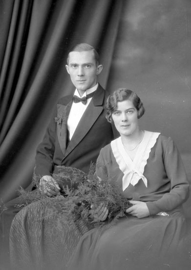 Uppgift enligt fotografen: "Uddevalla. Ateljéfoto. Brudpar. Erik Hermansson."