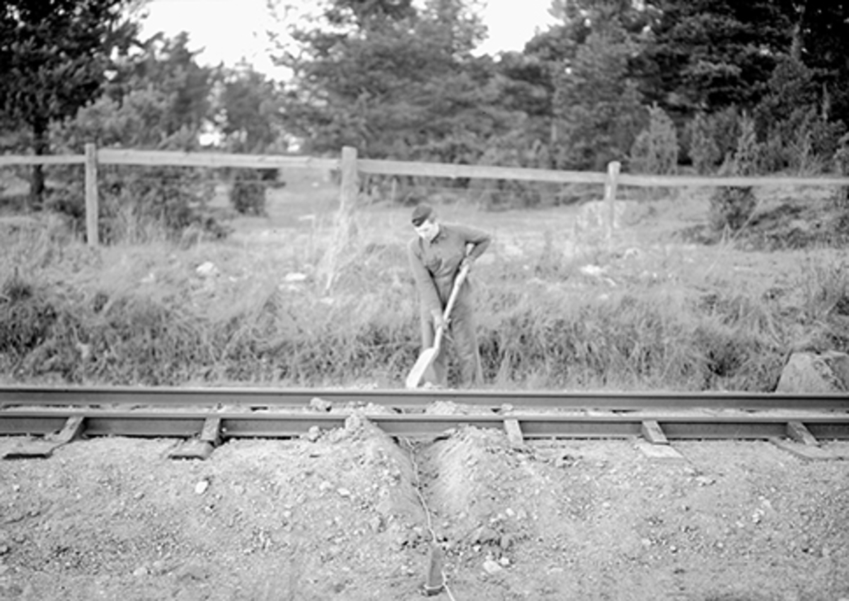 Byggnadsarbete vid slipen på F 2 Roslagens flygflottilj. Arbete vid vinschen