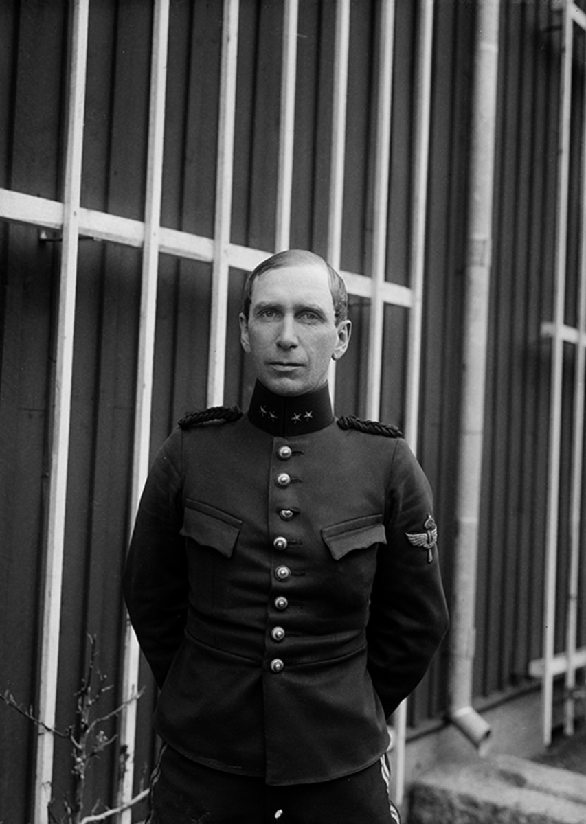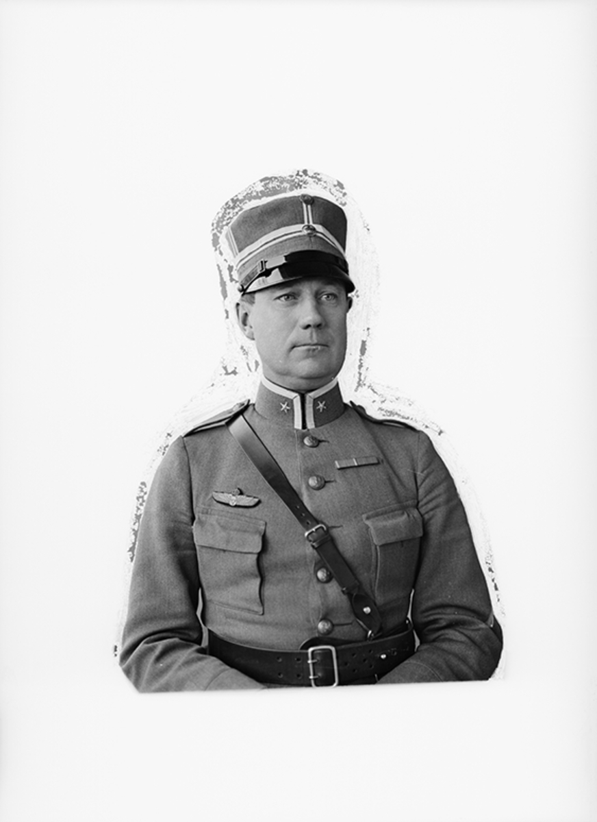 Porträtt av major Emil Björnberg, chef för Tredje flygkåren. Maskerad bild.