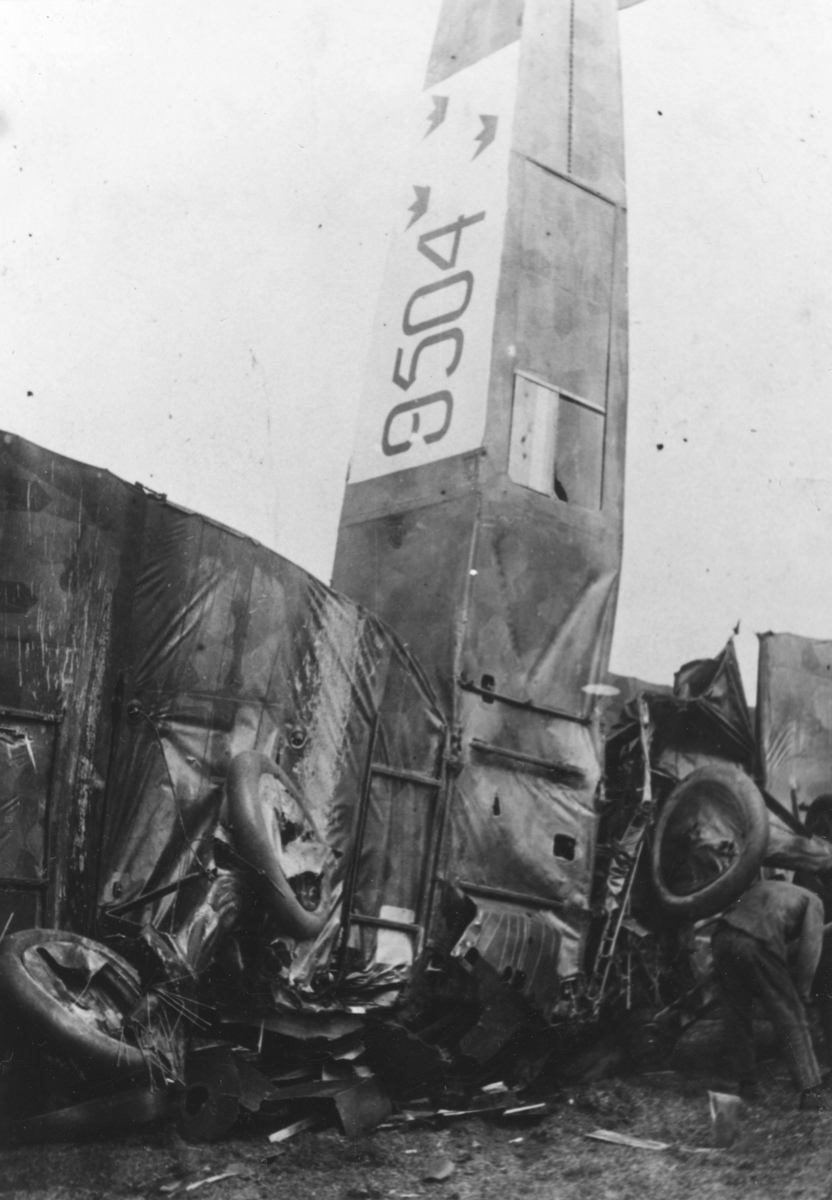 Haveri. Flygplan AEG G.V nummer 9504 har havererat på flygfältet på Malmen.