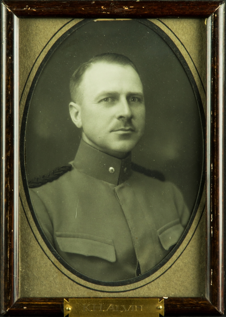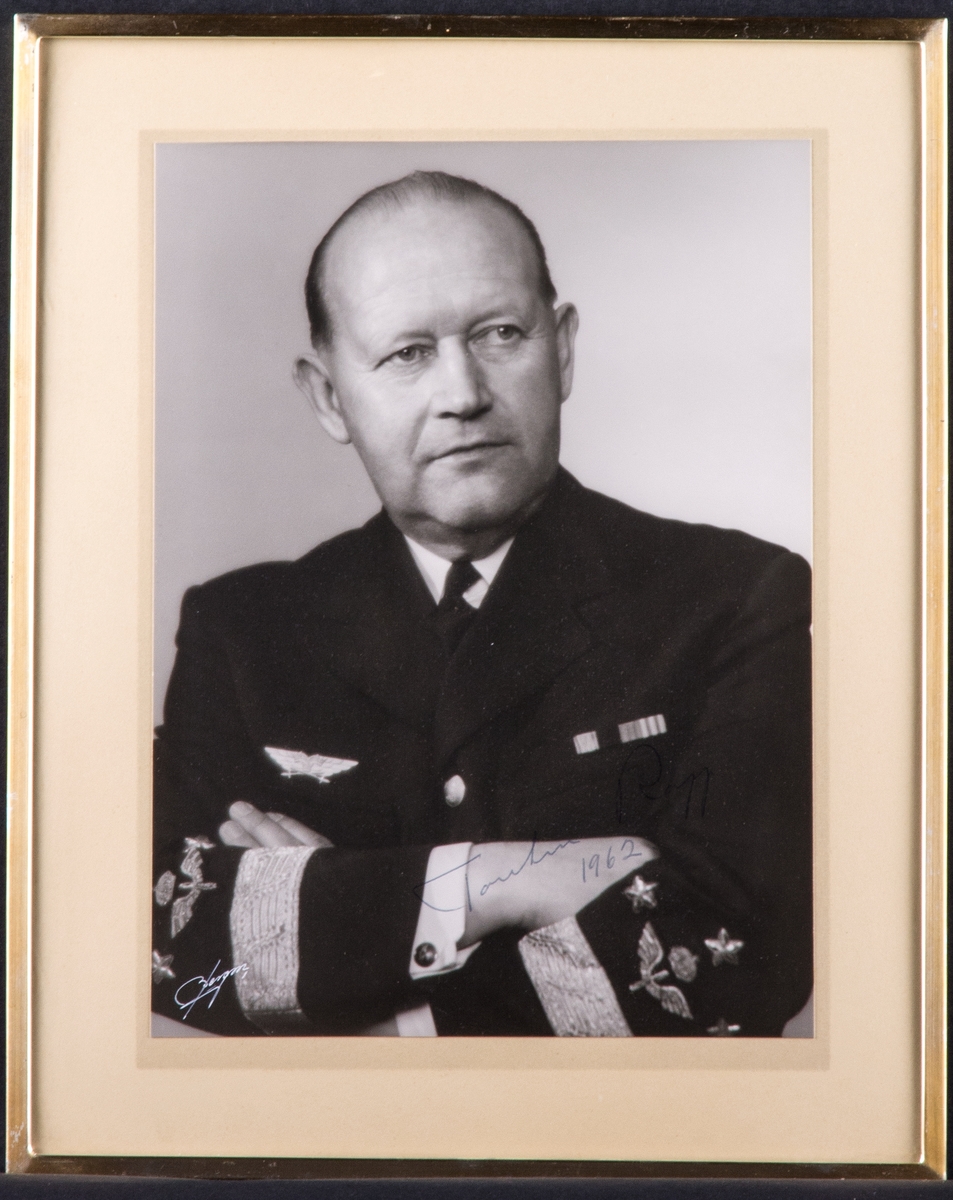 Porträttfotografi av Emil Björnberg, chef för 3. flygkåren 1926-1932. Inramat foto.