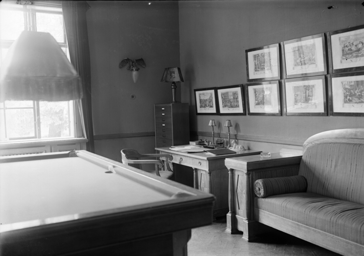 Sista middagen på gamla officersmässen på F 3 Östgöta flygflottilj, 1943. Grupporträtt av män sittandes till bords.