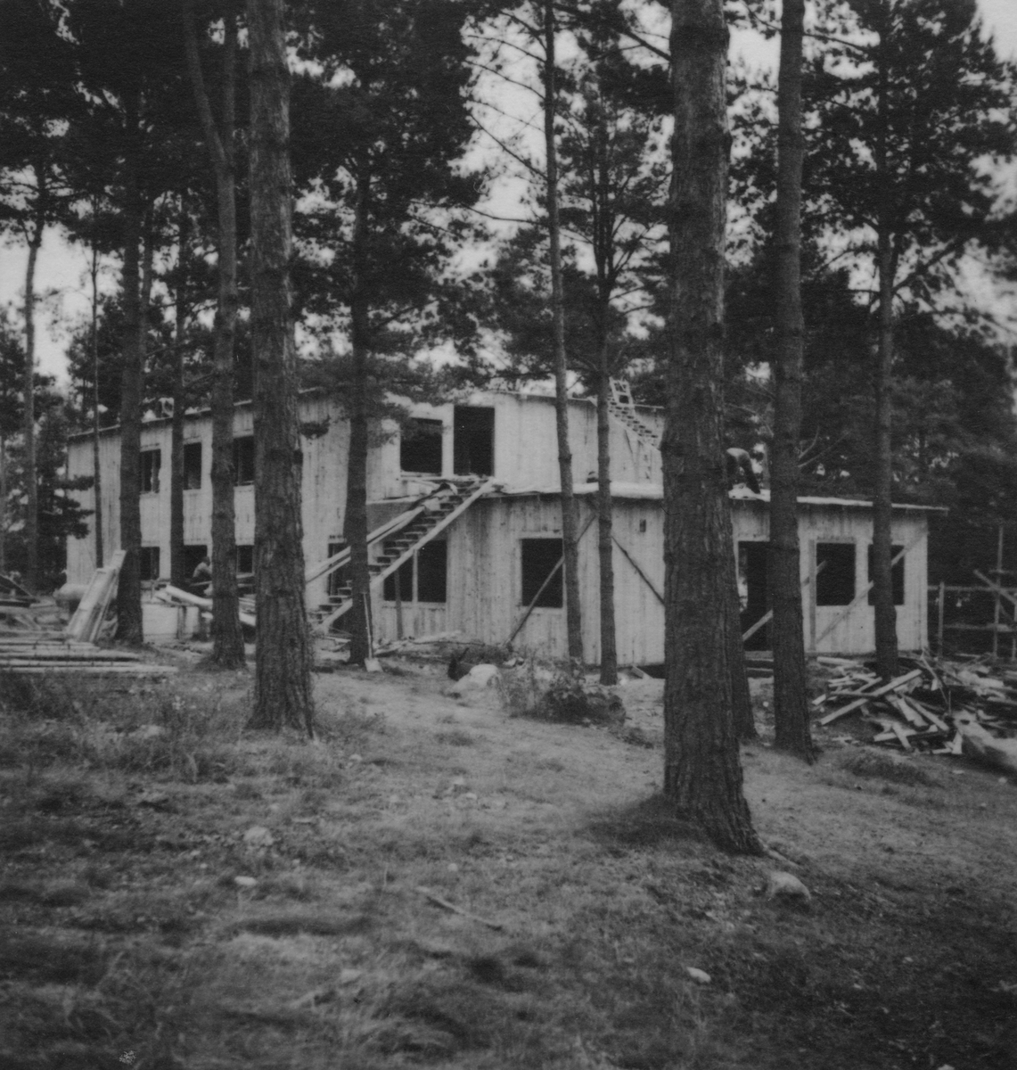 Kanslibyggnad på F 2 Roslagens flygflottilj, 1932 med framfartsväg i förgrunden.