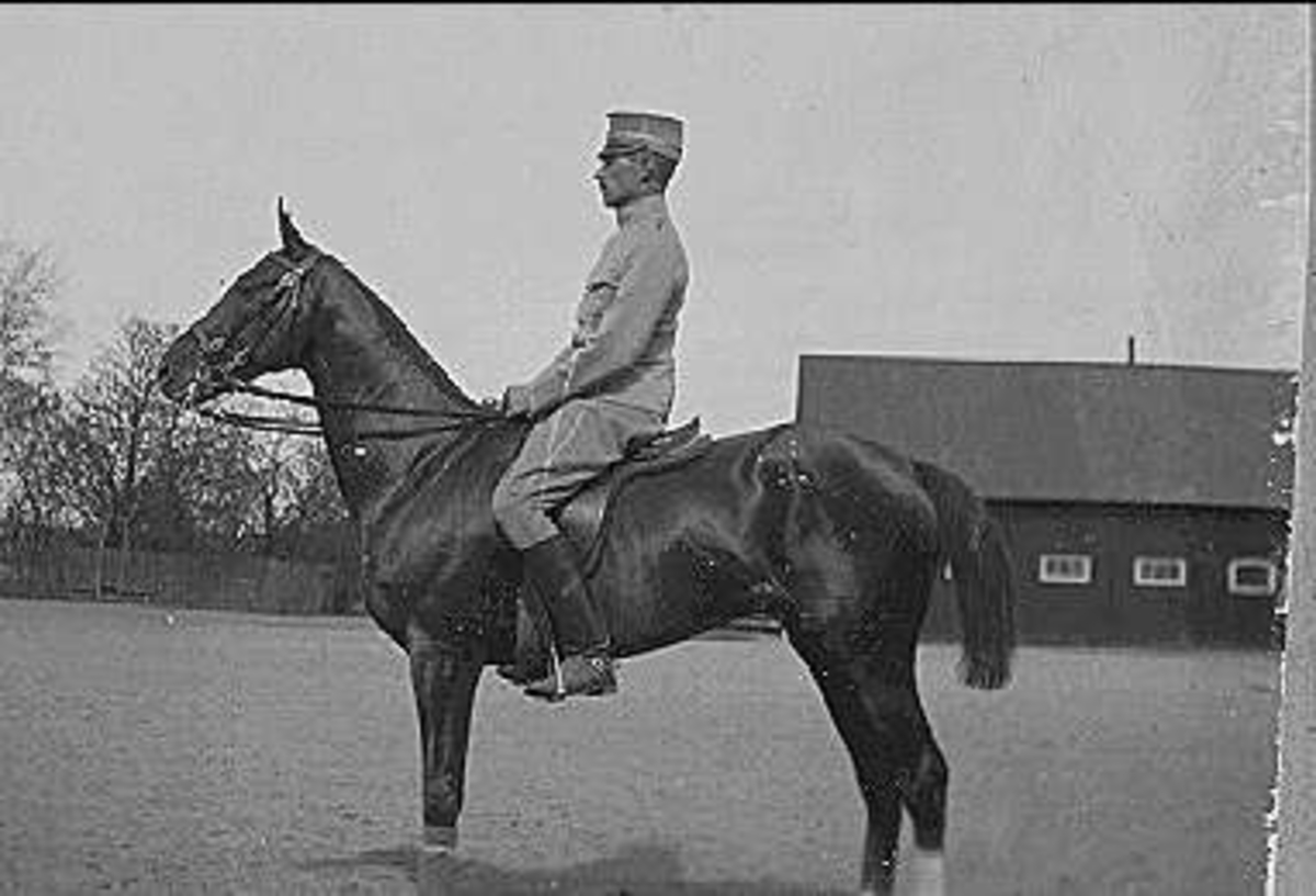Gata i husarlägret Sanna Hed. Närmast kameran ryttmästare Nils Stedt på Livskvadron.