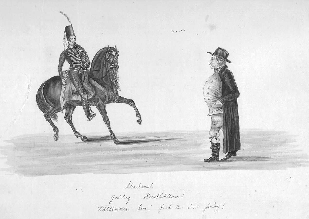 John Arsenius, född 1818. Officer vid K 3 1838-1868. Känd konstnär, framför allt hästmålningar. Söner: Georg -- Konstnär. Sam -- Officer, fältjägare. Återkomst. Goddag, Rusthållare! Välk