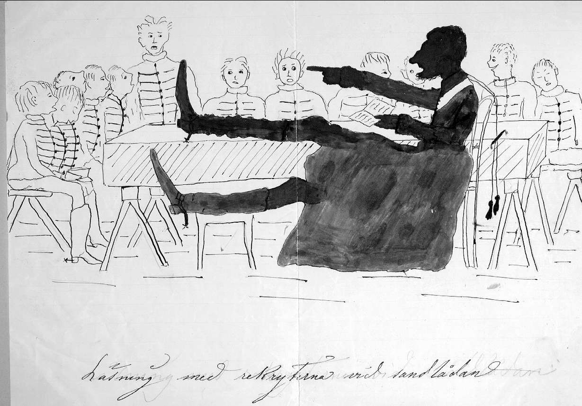 John Arsenius, född 1818. Officer vid K 3 1838-1868. Känd konstnär, framför allt hästmålningar. Söner: Georg -- Konstnär. Sam -- Officer, fältjägare. Läsning med rekryterna vid sandlådan