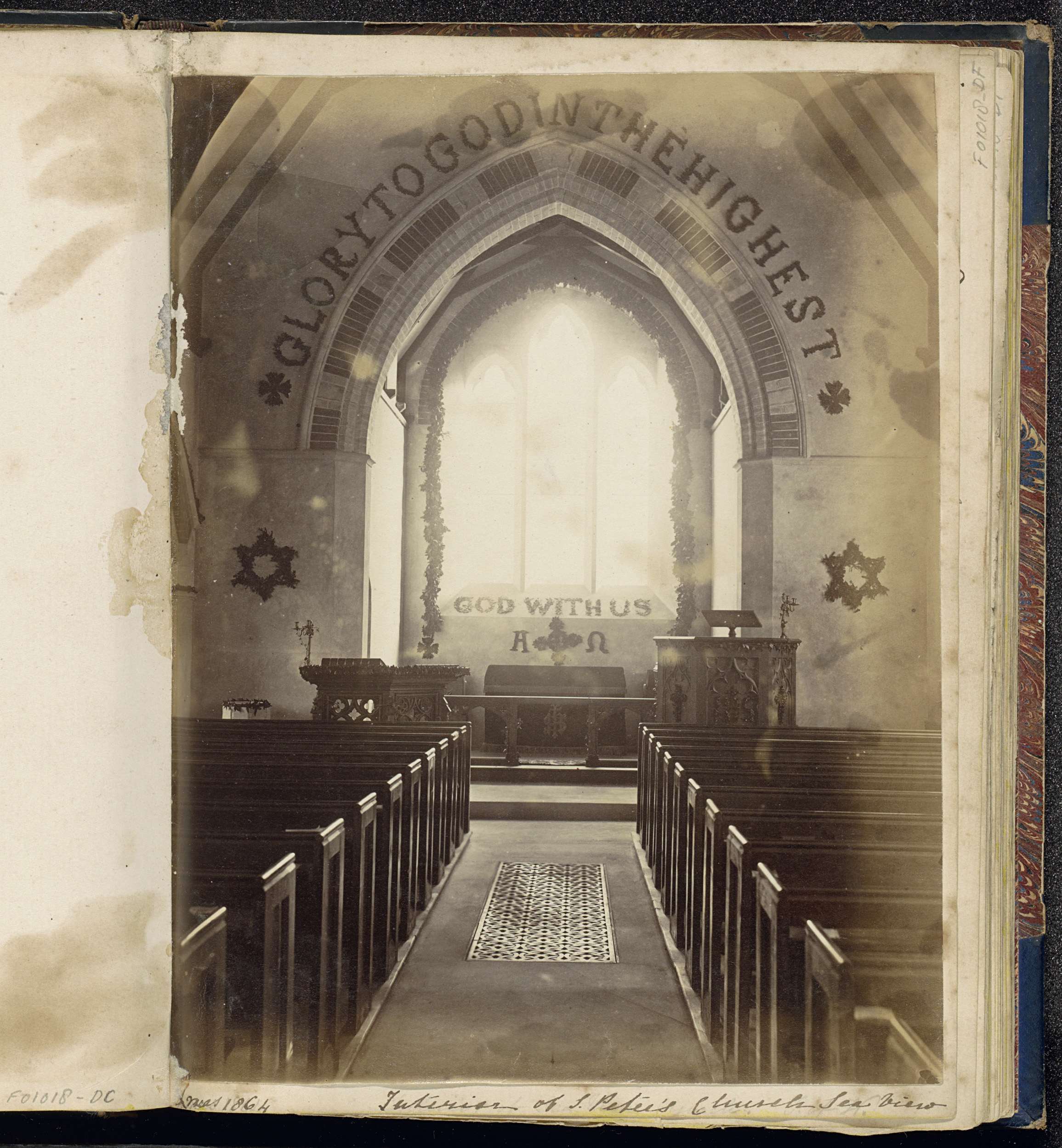 Interieur van de Sint Petruskerk in Seaview op het Isle of Wight tijdens Kerstmis