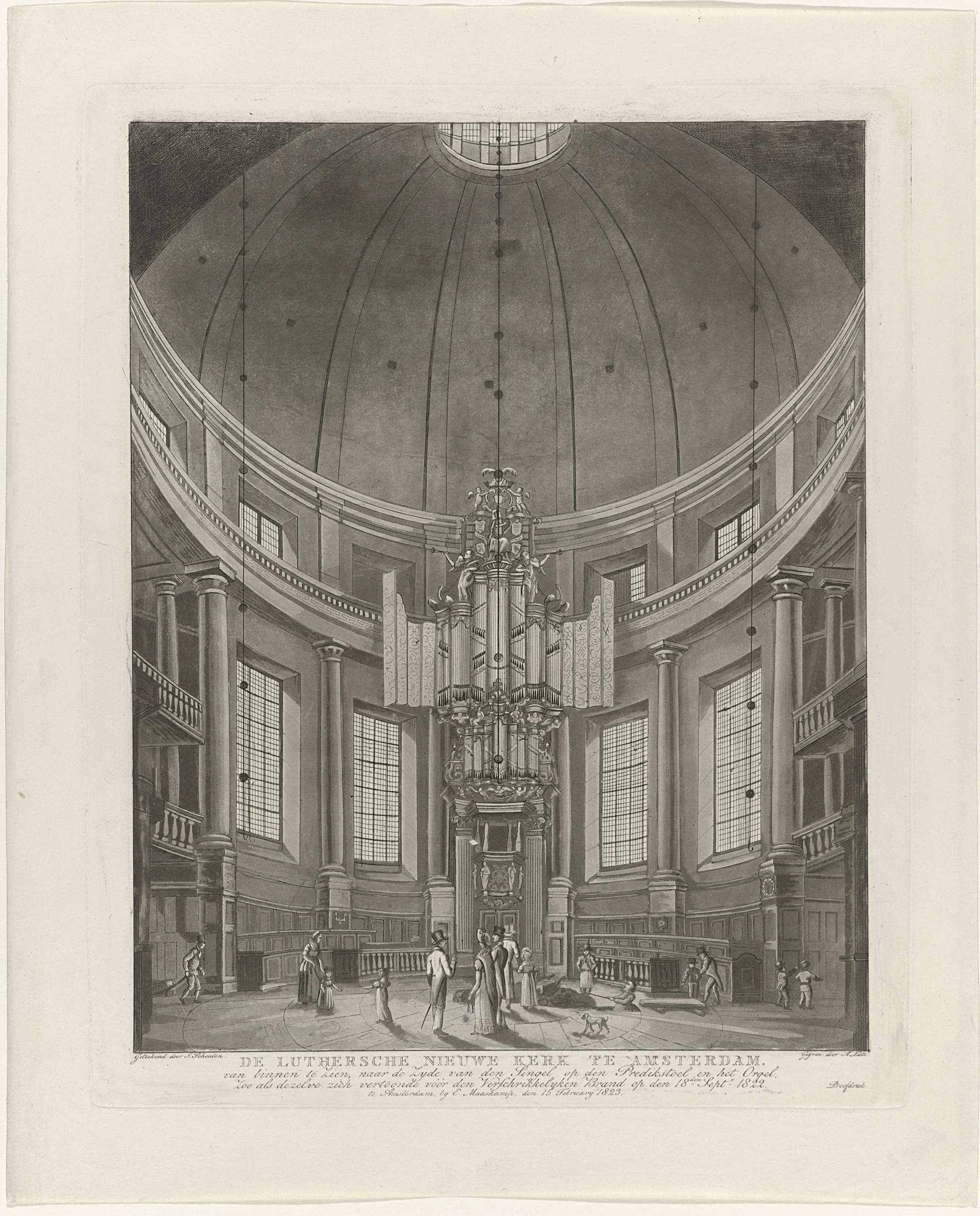 Interieur van de Nieuwe Lutherse Kerk te Amsterdam, voor de brand van 1822