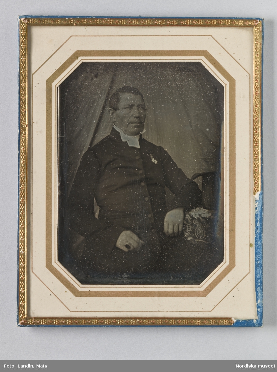 Ur "Photografiskt Album för år 1861 öfver fångar förvarade å Warbergs fästning". Fånge N:o 168 C. Pettersson. Fjärde resan stöld. 55 år gammal, född i Tvings sn., Blekinge län