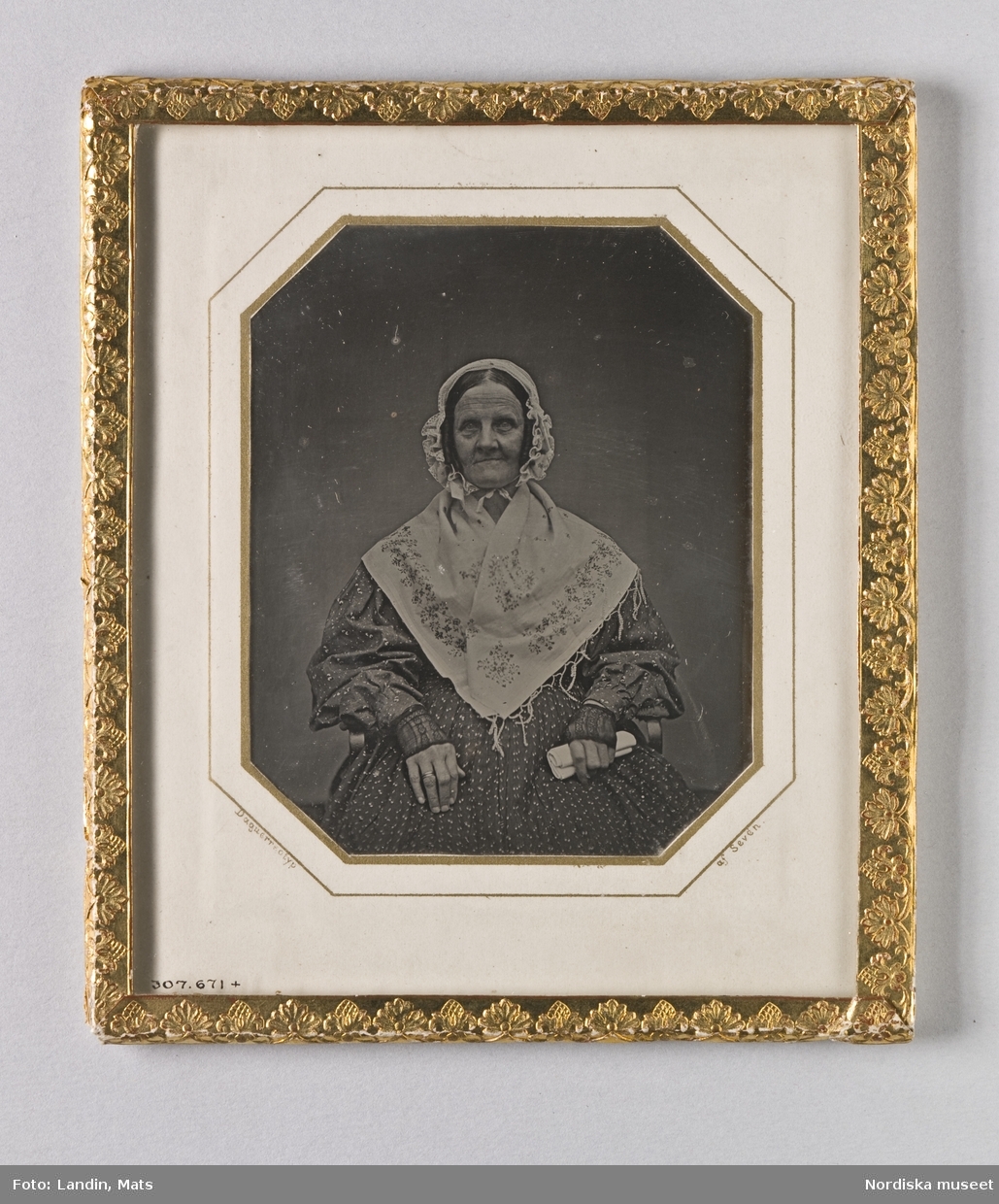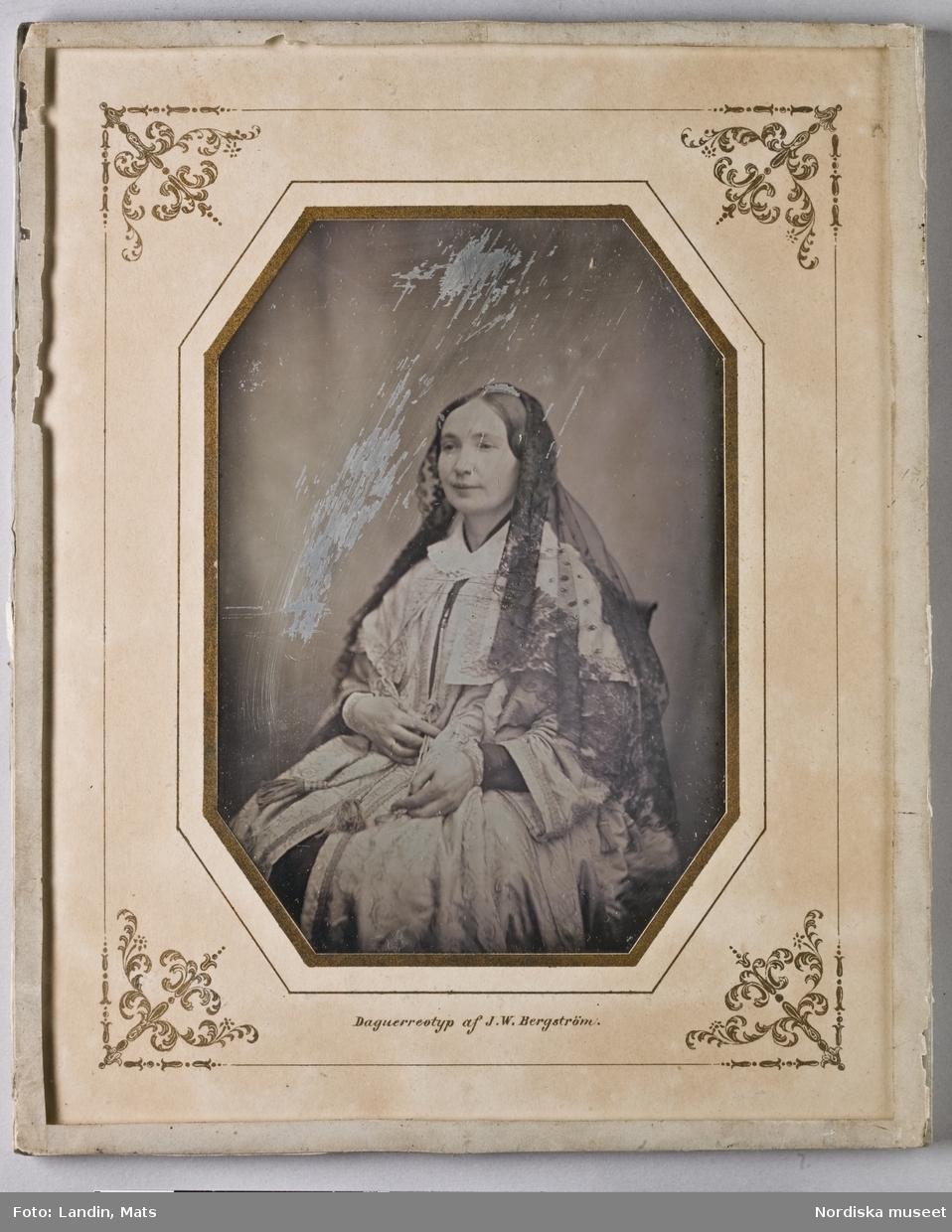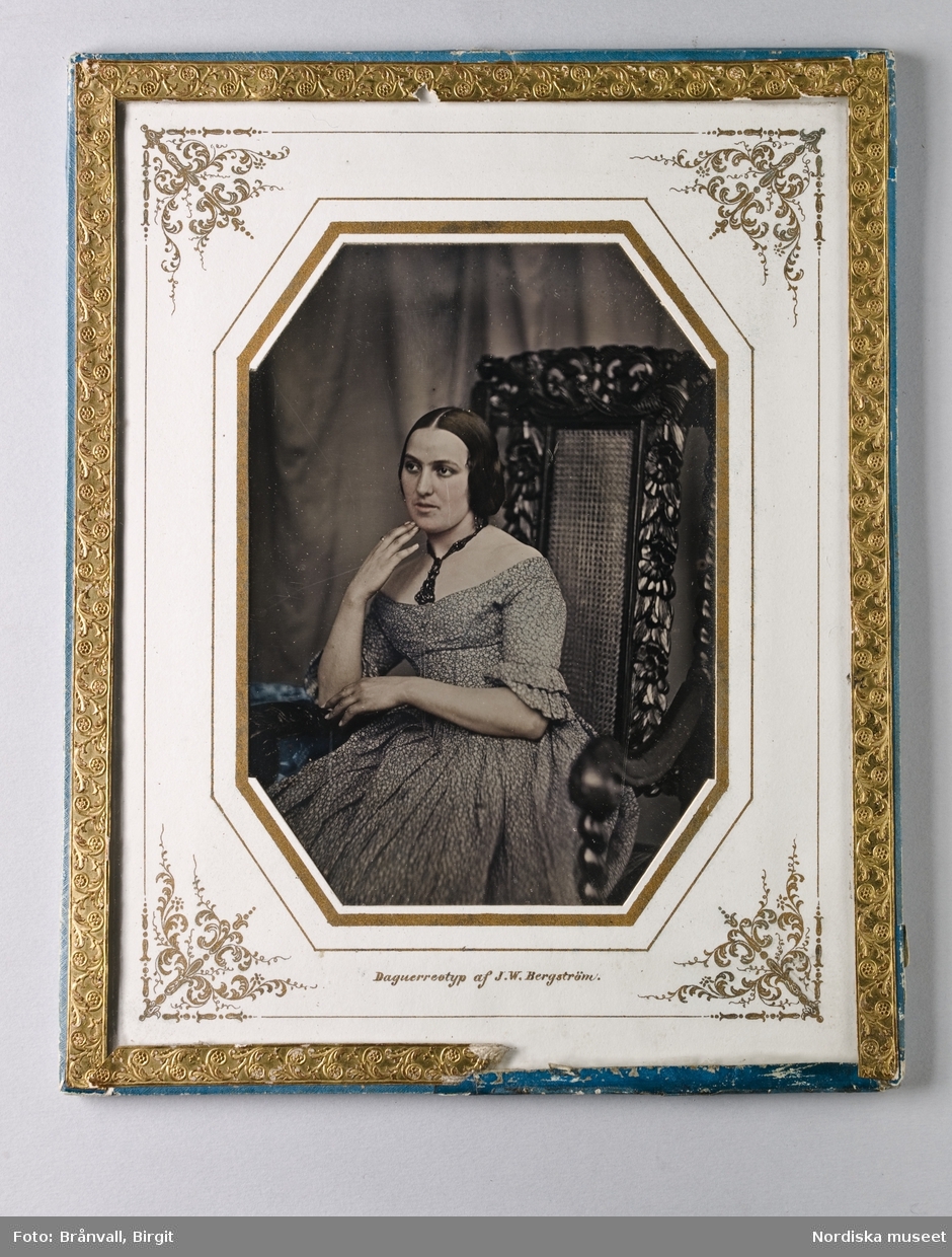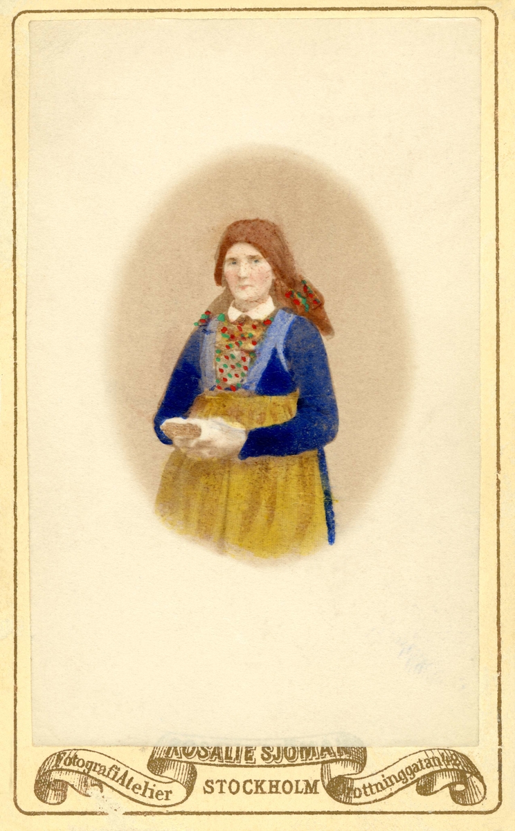 Akvallererad blyertsteckning av kivnna i dräkt , 1800-talets första hälft. Akvallererad blyertsteckning i storformat av Otto Wallgren