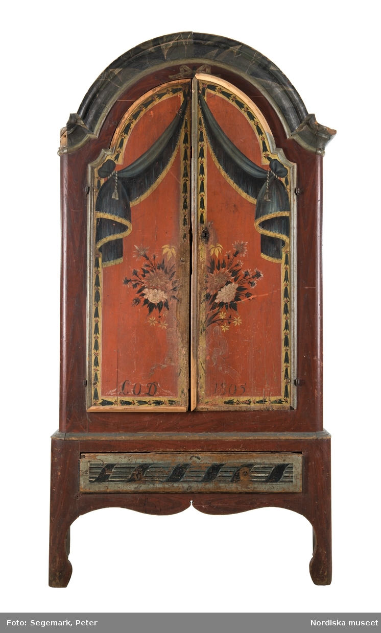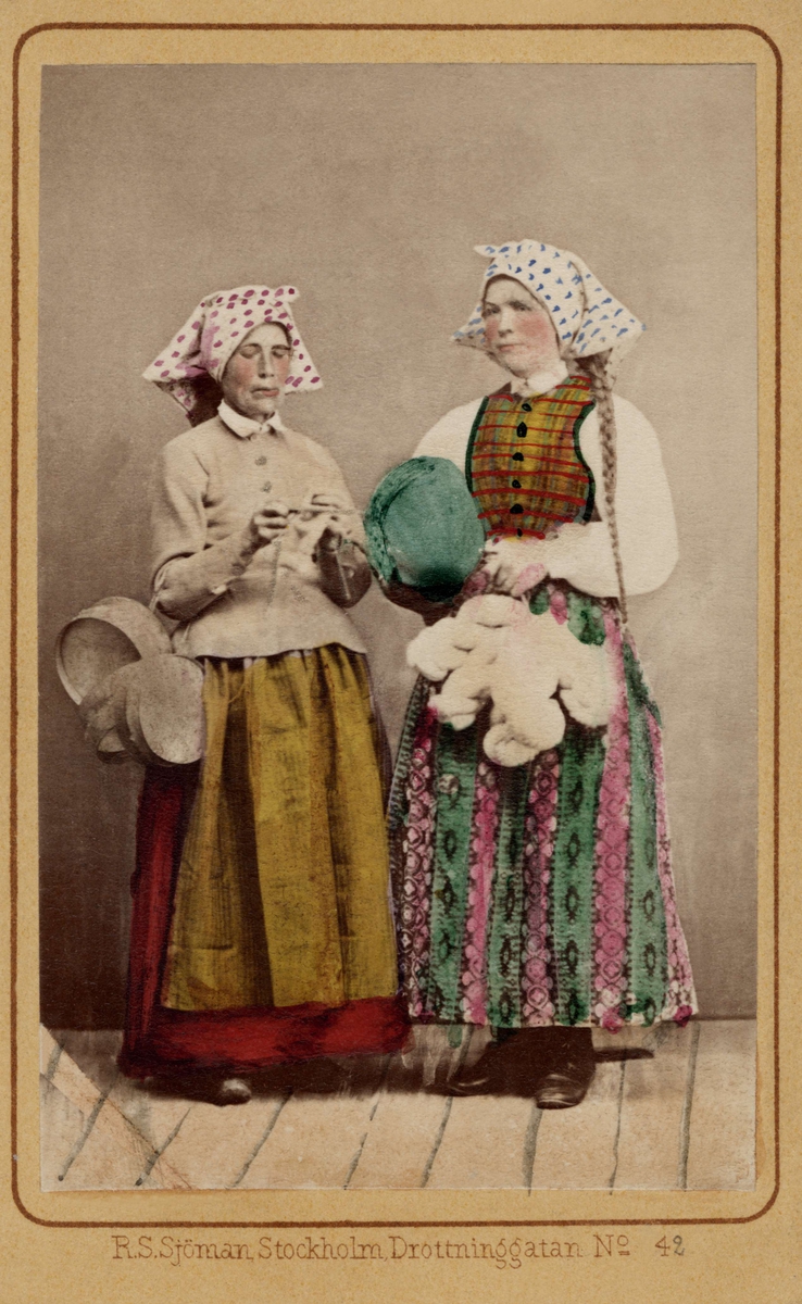 Dräkt. "Femmes de la Paroiifse de Wingåker" Två kvinnor i dräkt. Akvarell i storformat av C.W. Swedman.