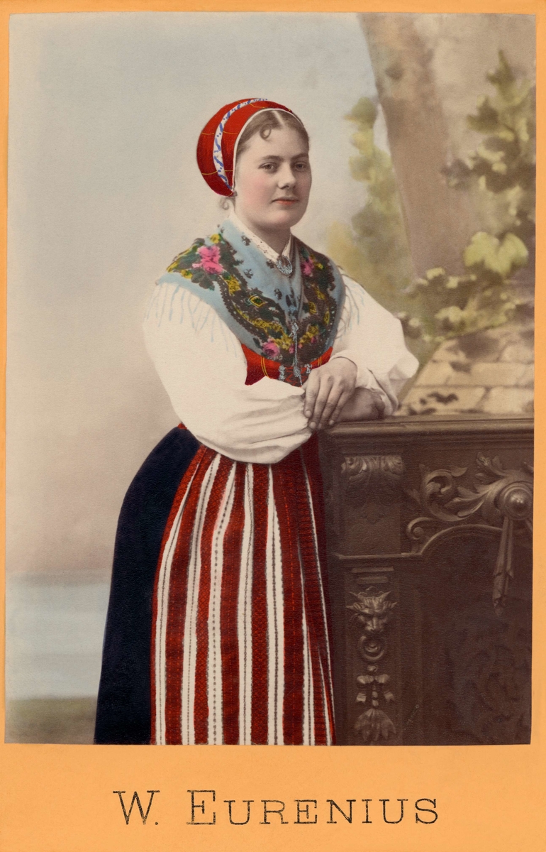 Pige fra Jolster i Sandfjord." En kvinna i Norsk sockendräkt