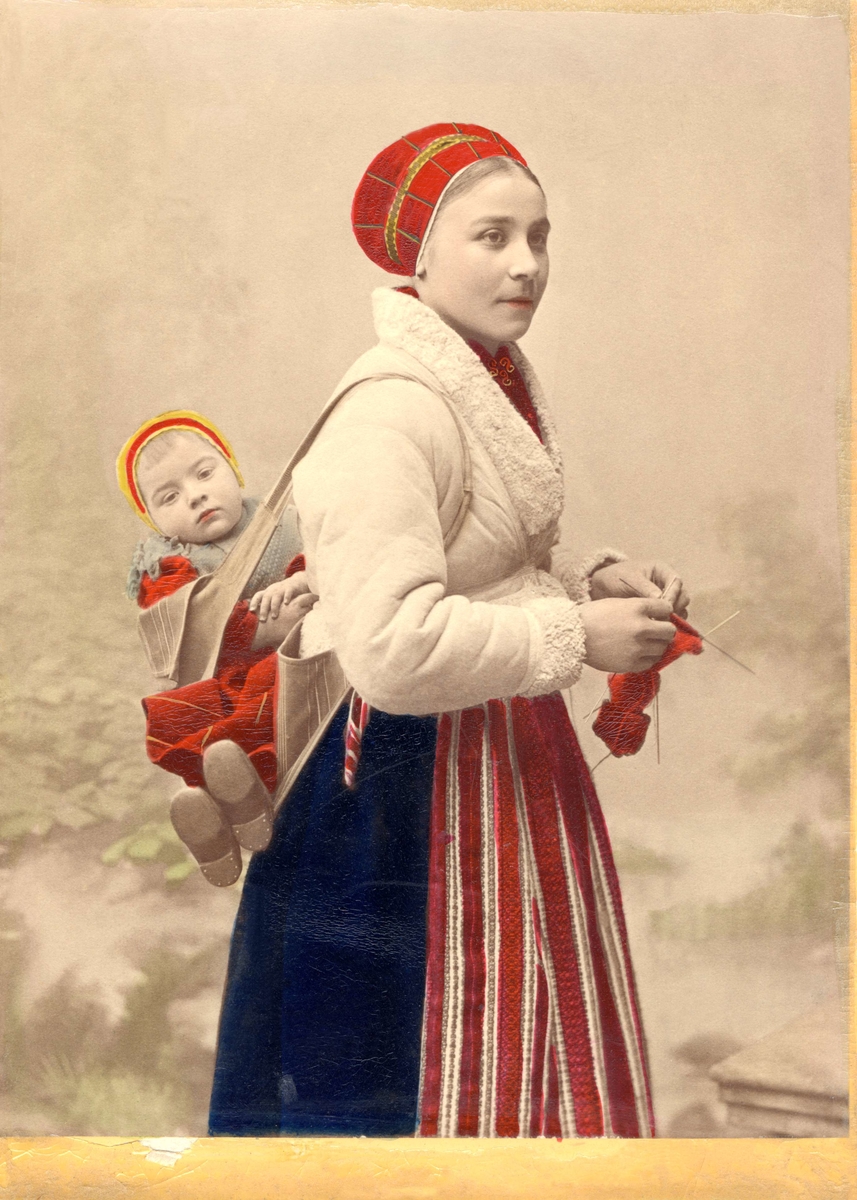 Föreställer en Österåkers - kvinna, kallad "Brogtorpsmora". (Hennes mera officiella namn känner inte undertecknad, men hoppas ku