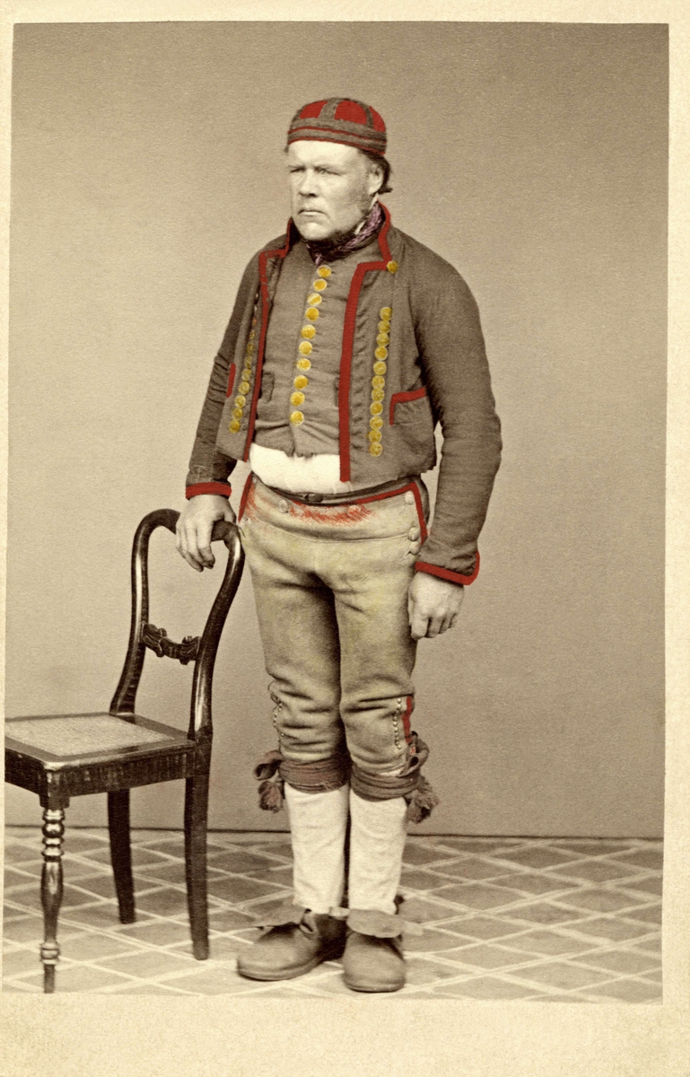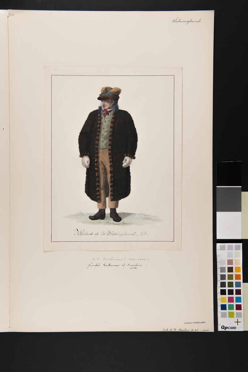 "Habitant de la Helsingland" Man i päls. Akvarell av C. W. Swedman.