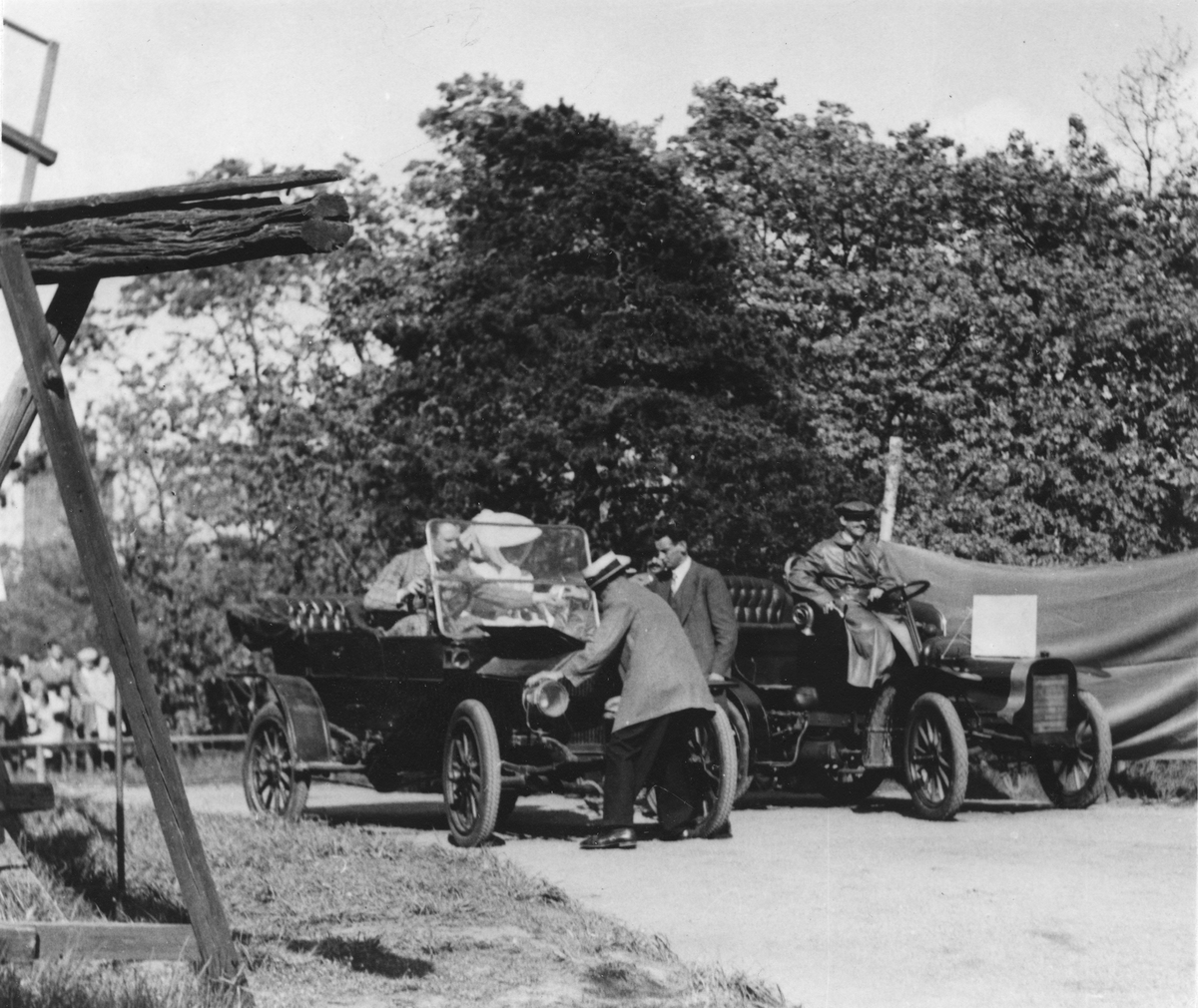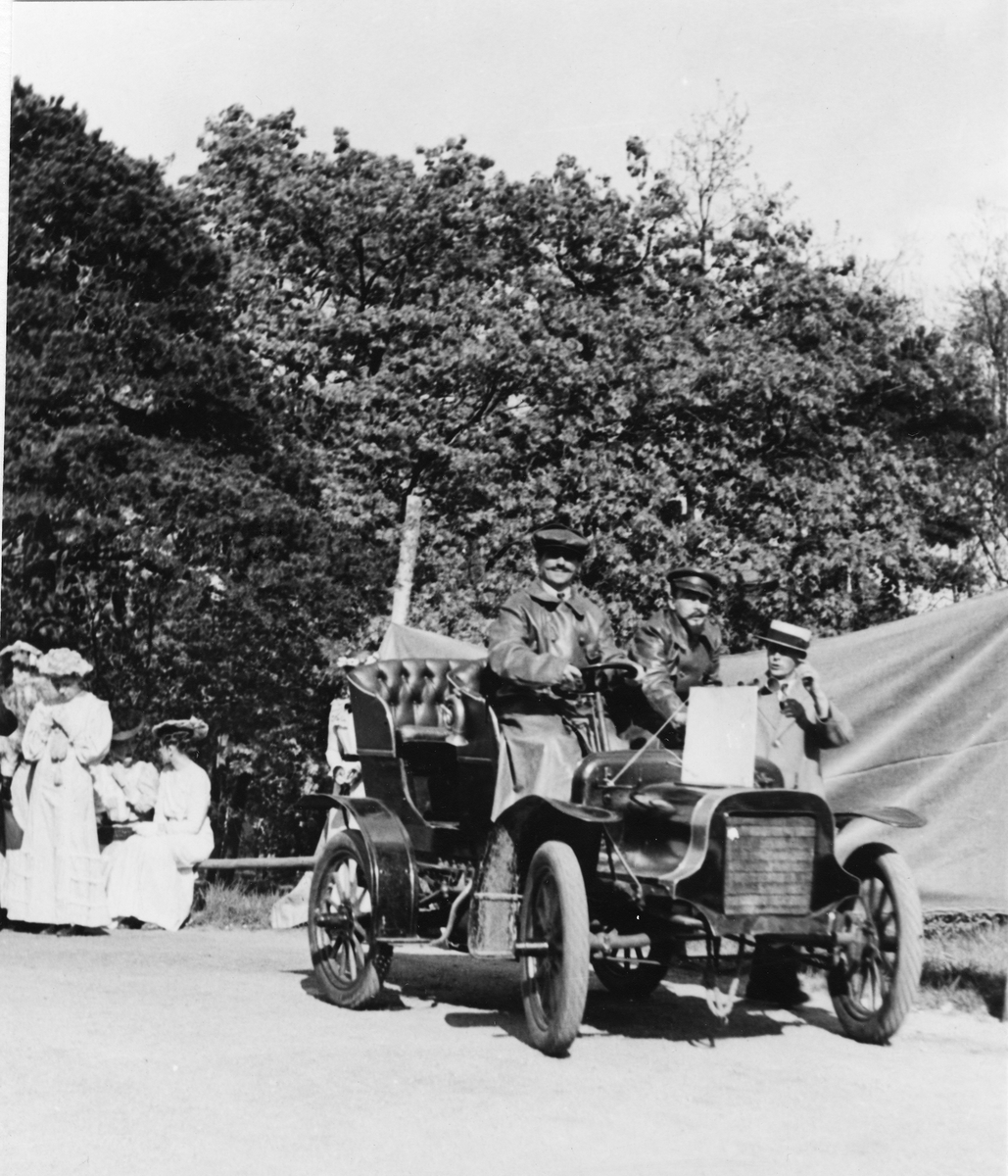 Djurgårdsmässan 1939 på Solliden, Skansen den 21 maj 1939. Från Skådespelet "Grand Prix 1901". T.v. Cadillac, modell 1905 från general motors Nordiska AB med skådespelare Adolf Witzansky och M. Grünb