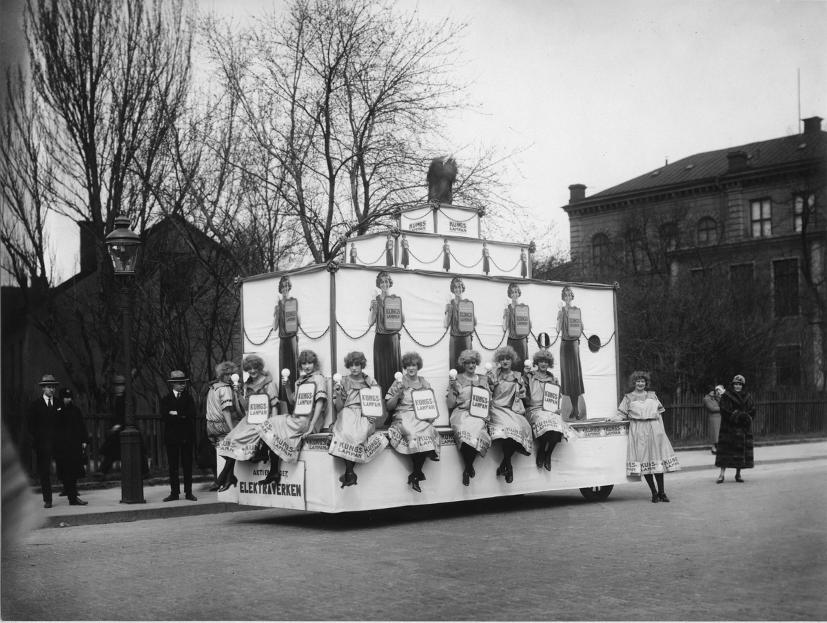 AB Stockholms Glödlampfabriks parad "Kungslampsparaden" i Stockholm 2 maj 1926.